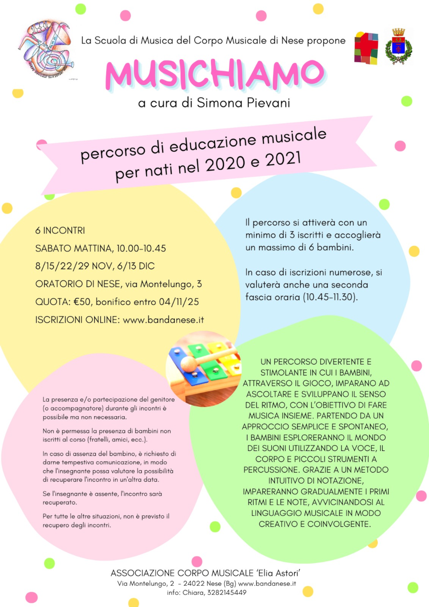 La Didattica del Corpo Musicale Accanto all'esecuzione di concerti e alla partecipazione alle cerimonie civili e religiose, il Corpo Musicale di Nese, attiva sul territorio da oltre un secolo, concentra da tempo gran parte delle proprie risorse nella divulgazione della cultura musicale.